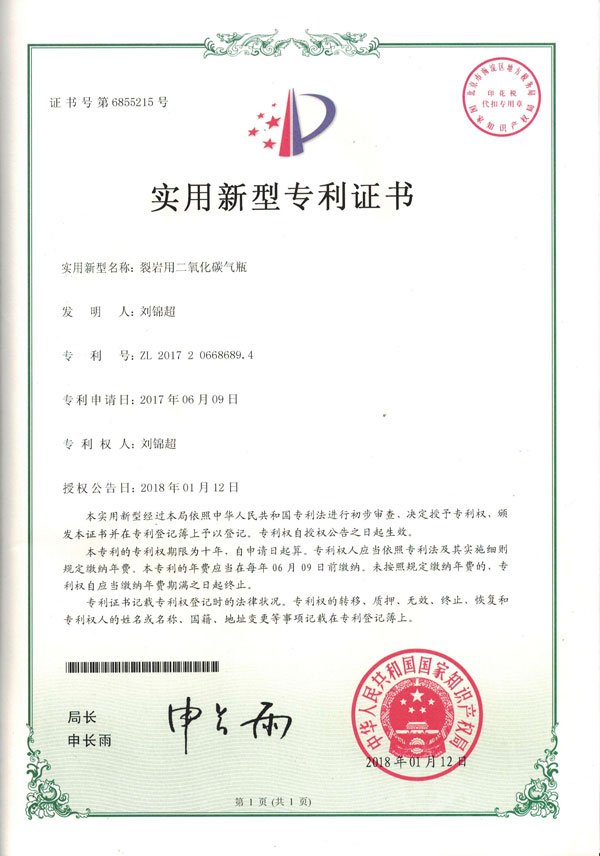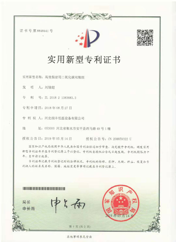 ■ 《高效裂岩用二氧化碳双瓶组》专利证书
